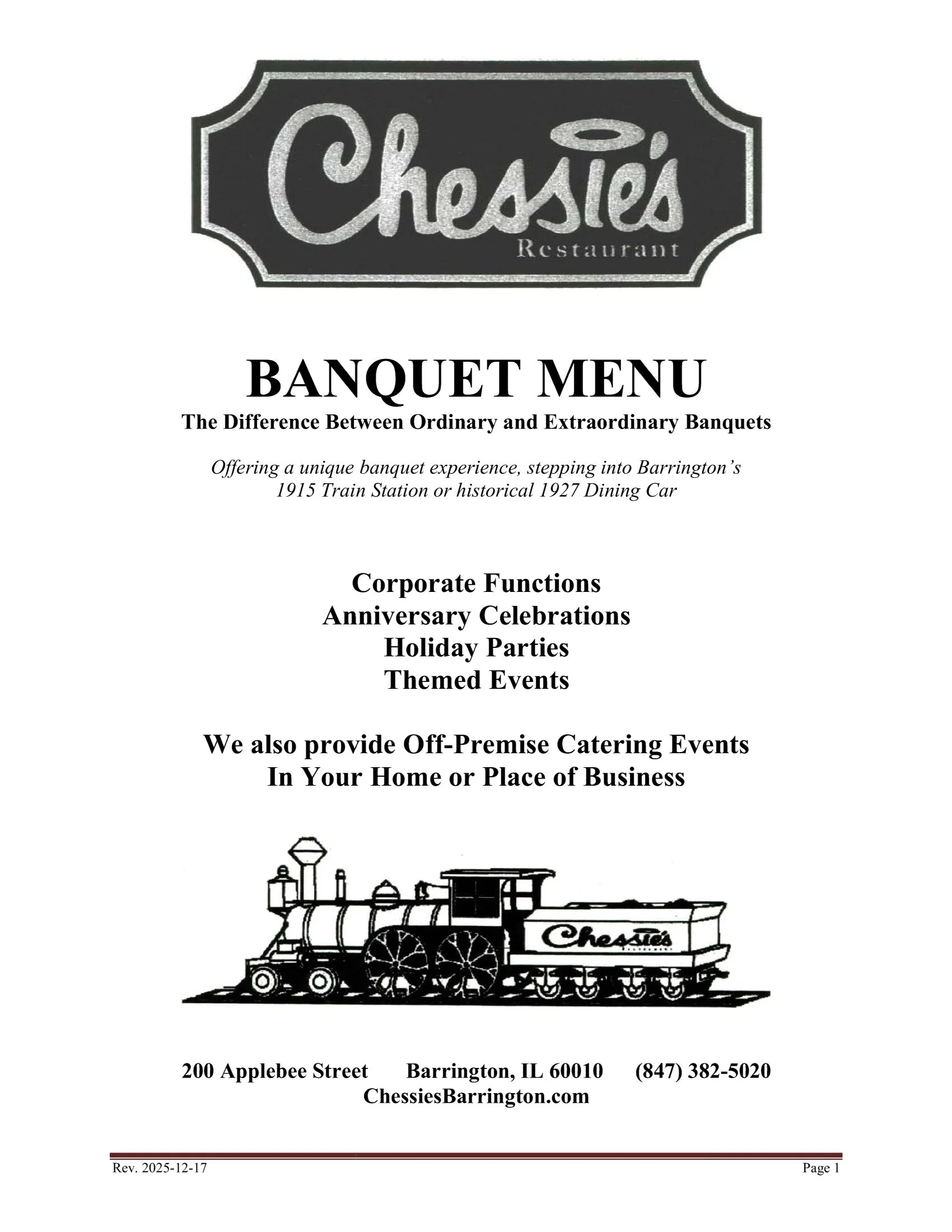 Offering a unique banquet experience, stepping into Barrington’s 1915 Train Station or historical 1927 Dining Car.